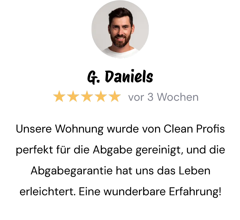 Eine Umzugsreinigung mit Abnahmegarantie ist ein Service, dass Ihre Wohnung, Ihr Haus oder Ihre Geschäftsfläche gründlich gereinigt wird, um den Anforderungen Ihres Vermieters oder Ihrer Hausverwaltung zu entsprechen. Mit unserer Abnahmegarantie können Sie sicher sein, dass die Reinigung den höchsten Standards entspricht und Sie keine Probleme bei der Wohnungsabgabe haben.